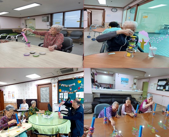 9월23일 빨래집게로 고리 걸기 페이지 정보 작성자 노인전문요양원 작성일25-09-24 16:50 조회31회 댓글0건 관련링크 목록 본문 어르신들 손가락 소근육 기능 유지를 위한 신체프로그램으로 빨래집게를 이용한 활동을 해보았습니다. 선택할 링의 색 순서를 정해주기도 하고, 갯수를 정해주기도 하였습니다. 집중해서 진행자의 설명을 듣고 빨래집게를 눌러 링을 잡아 스틱에 정확하게 잘 걸어 주셨답니다. 댓글목록 등록된 댓글이 없습니다. 목록