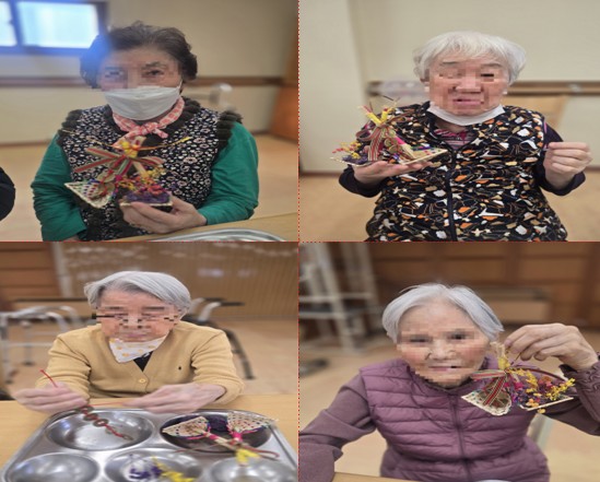 1월 9일 복조리만들기 페이지 정보 작성자 노인전문요양원 작성일26-01-08 18:06 조회26회 댓글0건 관련링크 목록 본문 어쩌죠? 2026년 복은 여기 효능원노인전문요양원으로 다 들어 올 것 같습니다.왜냐구요? 원예교실 선생님의 지도하에 우리 어르신들께서 복들어 오기를 기원하며 복조리를 만들었기때문입니다.^^완성된 복조리를 생활실 여기 저기 장식하며 다시 한번 마음 담아 기도해봅니다. 댓글목록 등록된 댓글이 없습니다. 목록