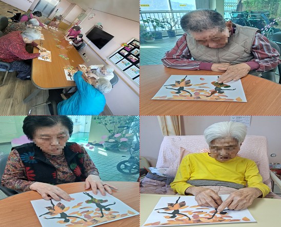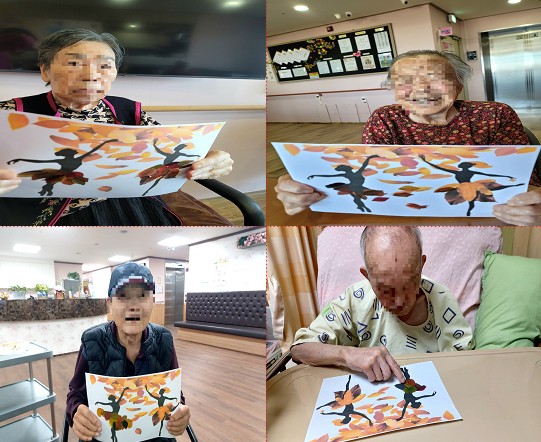 11월 14일 발레리나낙엽치마꾸미기 페이지 정보 작성자 노인전문요양원 작성일25-11-14 15:57 조회18회 댓글0건 관련링크 목록 본문 예쁘게 물든 진짜 낙엽 대신 스티커 낙엽을 활용하여 발레리나 치마를 꾸며보았습니다.우리 어르신들 솜씨 대단하시죠? 댓글목록 등록된 댓글이 없습니다. 목록