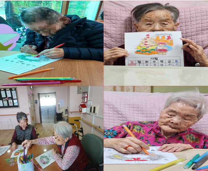 12월 1일 달력꾸미기 페이지 정보 작성자 노인전문요양원 작성일25-12-07 12:55 조회3회 댓글0건 관련링크 목록 본문 월초가 되면 우리 어르신들이 꼭 하는 활동이 있습니다. 바로 달려꾸미기 입니다. 날짜도 적어보며 소리내어 읽어도 보고, 요일도 이야기 해보며, 그림에 예쁘게 색칠까지 해주면 완성!이번 12월도 우리 어르신들 많이 웃으시며 행복하게 보내시길 바랍니다. 댓글목록 등록된 댓글이 없습니다. 목록