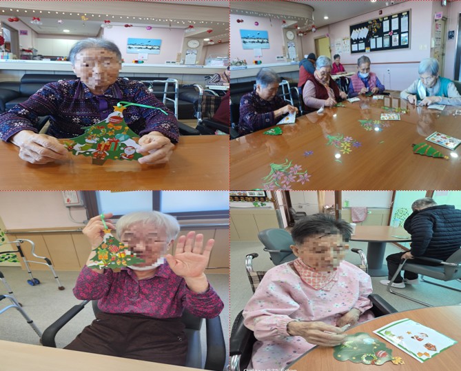 12월 5일 스티커로 미니 트리 꾸미기 페이지 정보 작성자 노인전문요양원 작성일25-12-07 15:34 조회4회 댓글0건 관련링크 목록 본문 준비된 트리 도안에 장식 스티커를 떼어 붙여 보며 미니 트리를 꾸며 보았습니다. 완성된 미니 트리는 어르신들이 계속 보실 수 있도록 생활실 내에 장식해 두었답니다. 댓글목록 등록된 댓글이 없습니다. 목록
