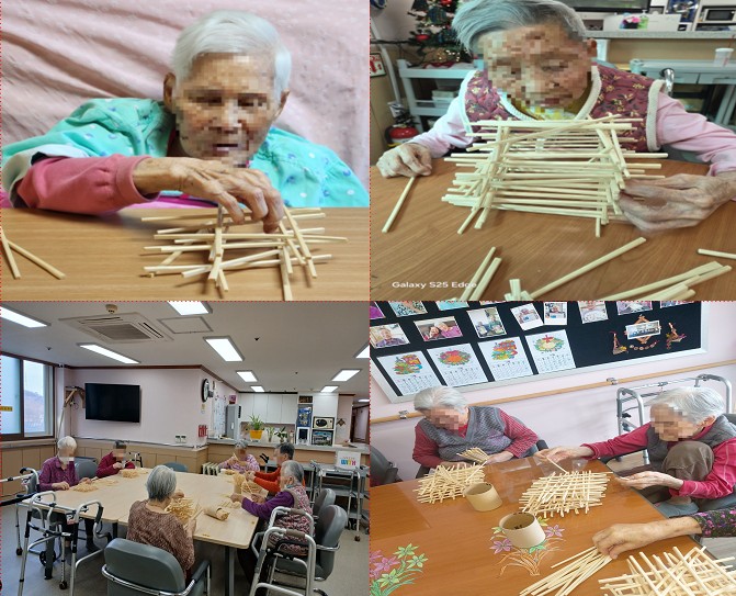 12월 8일 패턴쌓기 페이지 정보 작성자 노인전문요양원 작성일25-12-11 17:09 조회13회 댓글0건 관련링크 목록 본문 어르신들과 나무젓가락으로 패턴쌓기를 해보았습니다. 차분하게 한 층한층 쌓아 올리다보니 어느새 패턴이 만들어져 뿌듯함도 느끼시고, 옆에 어르신은 얼마만큼 쌓으셨나 관찰도 하시며 여가프로그램을 즐기셨습니다. 댓글목록 등록된 댓글이 없습니다. 목록