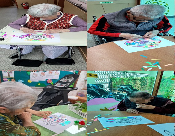 1월 16일 복주머니 모자이크 페이지 정보 작성자 노인전문요양원 작성일26-01-21 10:15 조회24회 댓글0건 관련링크 목록 본문 색종이를 자유롭게 찢어 붙여 보는 모자이크 방식으로 복주머니를 꾸며 보았습니다.작은 조각으로 찢어 붙이면서 손끝 소근육 사용도 촉진하고, 색깔을 고르고, 배치하는 과정에서 집중력과 인지기능도 자극하는 시간이었습니다.더불어 새해의 복을 기원하는 의미도 함께 나누었답니다. 댓글목록 등록된 댓글이 없습니다. 목록