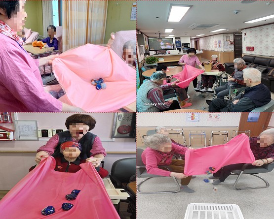 1월 22일 오재미보자기 페이지 정보 작성자 노인전문요양원 작성일26-01-28 15:00 조회15회 댓글0건 관련링크 목록 본문 보자기를 맞잡고 계신 어르신들께서 "하나, 둘, 셋" 호흡을 맞춰 보자기를 평평하게 만들면 그 위에 있던 오재미공이 튕기듯 나가게 되는데 거리와 힘 등을 조절해 앞에 있는 바구니에 넣어보는 활동이었습니다.바구니에 들어간 오재미공도 세어도 보며 함께 호흡을 맞춰 보는 시간이었습니다. 댓글목록 등록된 댓글이 없습니다. 목록