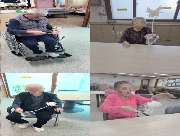 3월 16일 털실방울튕기기 페이지 정보 작성자 노인전문요양원 작성일26-03-20 13:39 조회18회 댓글0건 관련링크 목록 본문 털실방울을 튕겨 컵에 쏙 넣어보는 활동을 해보았습니다. 실 길이를 감안하여 어느 정도의 힘으로 털실 방울을 튕겨야 하는 지는 연습으로 찾아 내어야 하다 보니 많이 튕겨 보신 후에야 성공하실 수 있었답니다. 댓글목록 등록된 댓글이 없습니다. 목록
